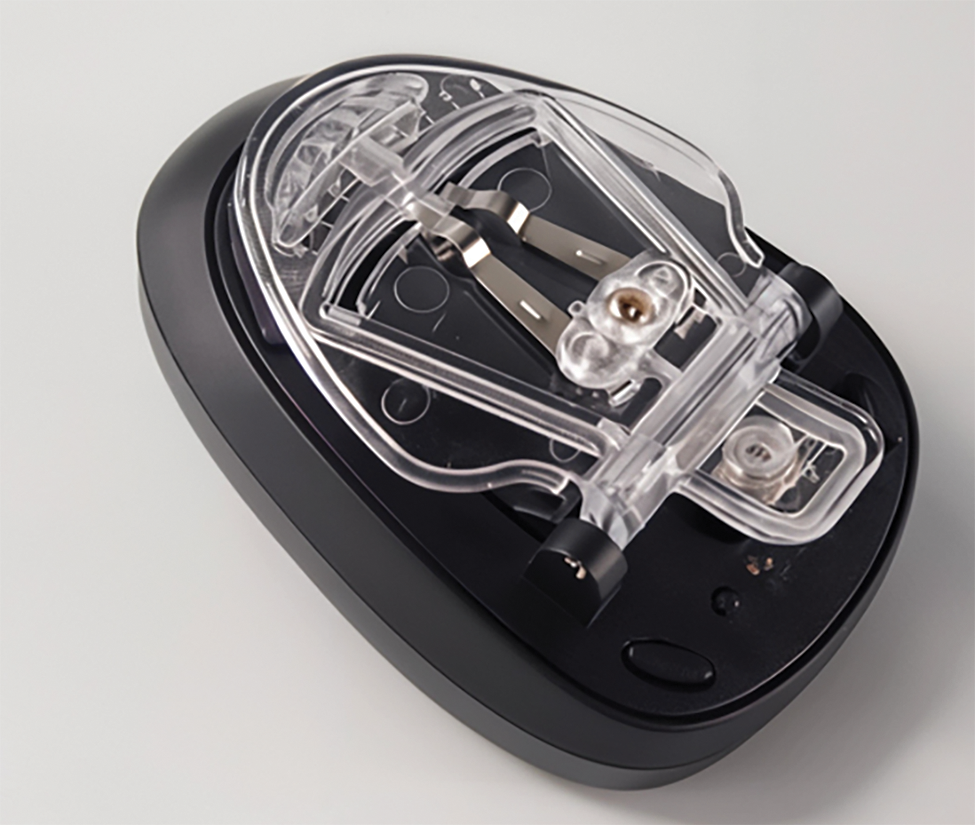 Universal chargers flooded into the market in the year 2003, the invention came because of non-standardization in the chargers made by phone industries. The invention of universal chargers helped to solve the non-compatibility in the chargers produced by phone industries. The universal charger as can be seen in Fig. 3 is made up of two adjustable metal contact springs and a transparent clip that will position the battery to be charged, a red light will blink steadily if the battery to be charged is correctly positioned. Universal chargers work with a voltage range of 5 V–20 V and current range of 1 A–5 A.