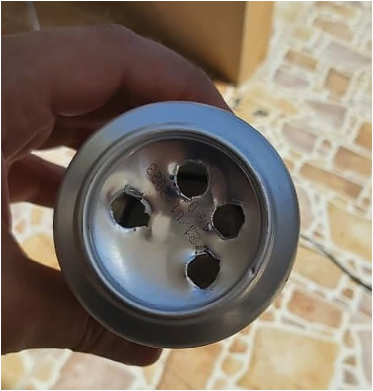Whereas a 54-cola drink container was used, it was perforated from the bottom with four holes and three holes from the top for each piece, as shown in Fig. 4.
