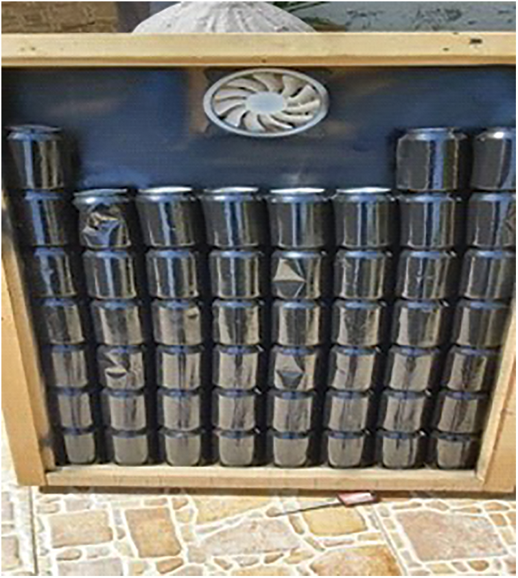 In order to safeguard the component against failure, bending, and deformation, transient heat transfer axi-symmetric mathematical modeling has been developed to predict hardness, determine the lowest hardness point, and investigate the impact of radius on E-LHP of industrial quenched steel bar [30]–[38]. One type of heat exchanger that converts solar energy into heat is an air solar collector. Typically, they are employed as air heaters in conjunction with auxiliary heaters to provide building air conditioning and to heat air for drying agricultural products. One of the benefits of solar air heaters is that the fluid never freezes or boils. The low density, low thermal capacity, and low heat conductivity of air are, nevertheless, drawbacks [40]. Typically, an absorber, a transparent cover, and a case containing back insulation make up an air solar collector. While air circulates between the absorber plate and the thermal insulation, the transparent cover lowers heat losses in the direction of the front. Heat must be effectively transferred from the absorber to the flowing air in order to increase thermal efficiencies [45]. suggested changing the straightforward absorber flat plate for a solid matrix; these included the corrugated absorber [41], the fin-attached absorber plate [42], the V-corrugated absorber plate [46], the porous absorber plate [45], and the metal matrix absorber plate [44] that enhances thermal performance. All of the suggested absorber plates use brand-new, pure materials, which suggests that producing these extremely unique absorber plates will be expensive. Reference [43] stated that the primary obstacle to the widespread adoption of thermal solar systems is their high cost in comparison to traditional heating systems. The importance of the collector’s expenses is growing, and there is a clear need for less expensive collectors. This concept led to the construction of a crude air solar collector design that used easily recyclable materials for the absorber plate [39]. This collector’s extremely low efficiency was revealed by the thermal evaluation [46]. We made the decision to use recyclable materials to design and construct a new, more effective air solar collector in light of the prior experience. The design process, the newly designed air solar collector with an absorber plate composed of recyclable aluminum cans (RAC), the thermal performance assessment, and a comparison of the collector’s thermal efficiency with other collectors’ efficiencies with various absorber plate designs documented in the literature are all covered in this paper.