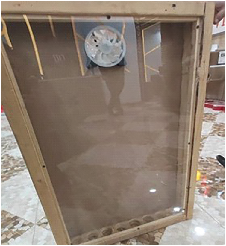 In this work, the components of the experiment will be explained, as four wooden boards 90 cm long and 50 cm wide were used to form a box, as shown in Fig. 1.