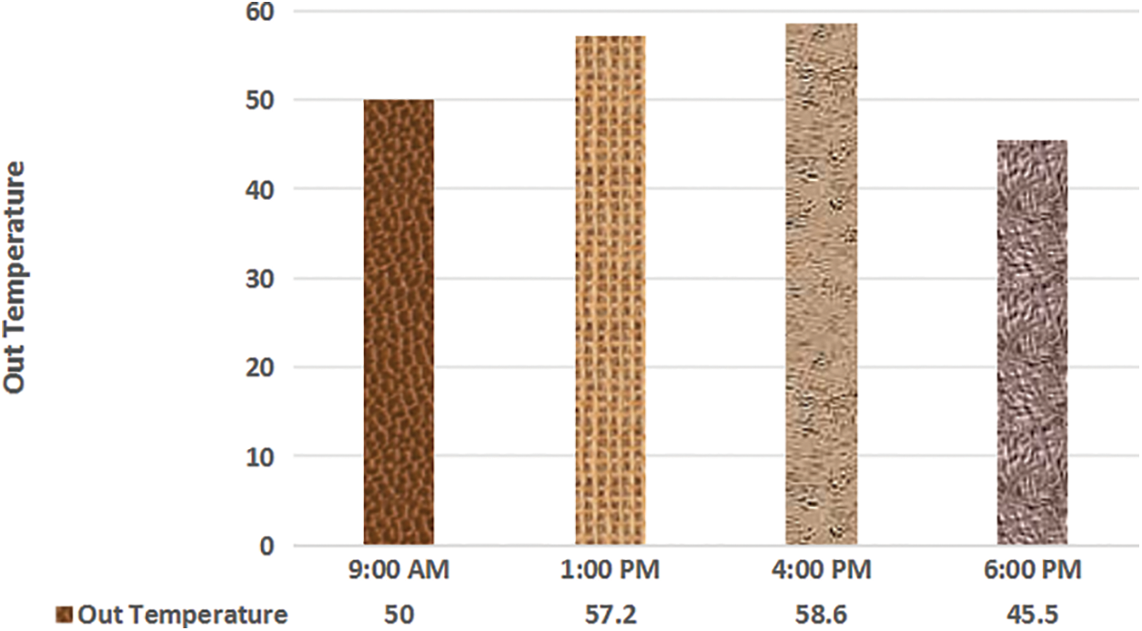 Fig. 10. The out temperature (°C) at different times on the first day.