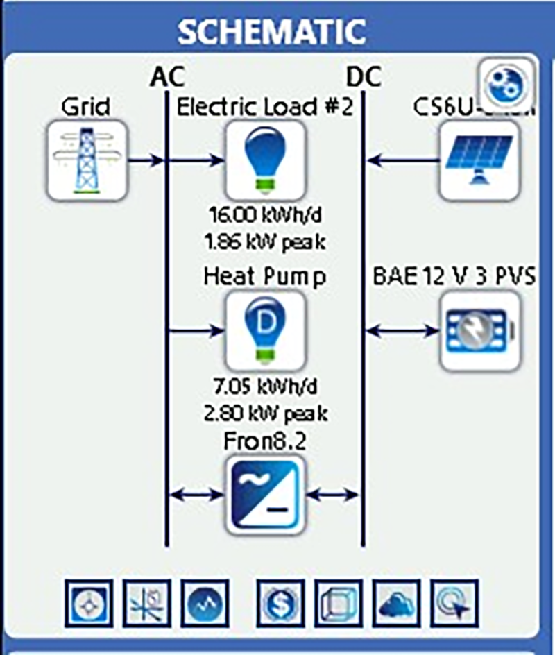 | Load specifications | Electrical load: 16.00 kWh/day with 1.86 kW peak load |