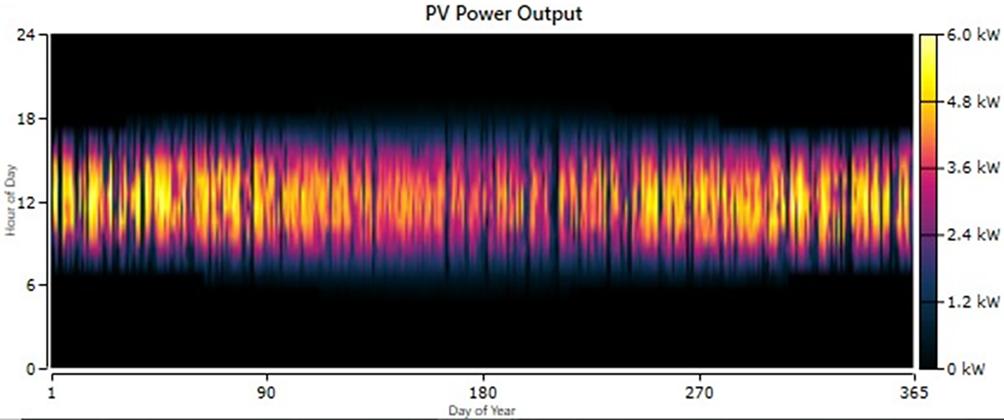 As shown in the load profile, with seasonal changes is in sync with the solar panels energy production patterns. This synchrony ensures any extra energy made during peak solar production hours is used efficiently, i.e., to power deferrable loads or to charge batteries. Fig. 4 showing these dynamics, that is, how energy demand and system operation interact over time. This visual helps us get how the solar energy system fits the site’s specific energy consumption patterns and at the same time keeps a high level of renewable energy penetration.