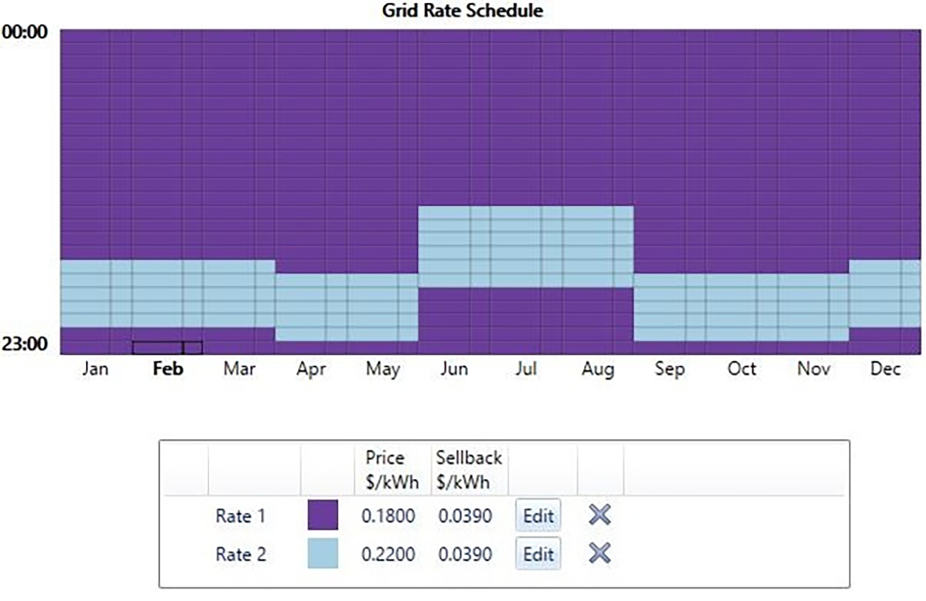 When a lot of solar power is being produced excess energy can be sold back to the grid resulting in a positive energy trade-off. Looking over a year the system sent about 40% more energy back to the grid than it took. The extra energy produced by the system in the summer months is utilized by deferrable load as it is shown in Fig. 7 when the system produces more energy it is efficiently utilized by in-house demand. Moreover, even with the decreased Grid Feed-in rates the system is still viable but with eroded financial attractiveness. Fig. 9 shows the scheduled rates for energy sold & purchased.