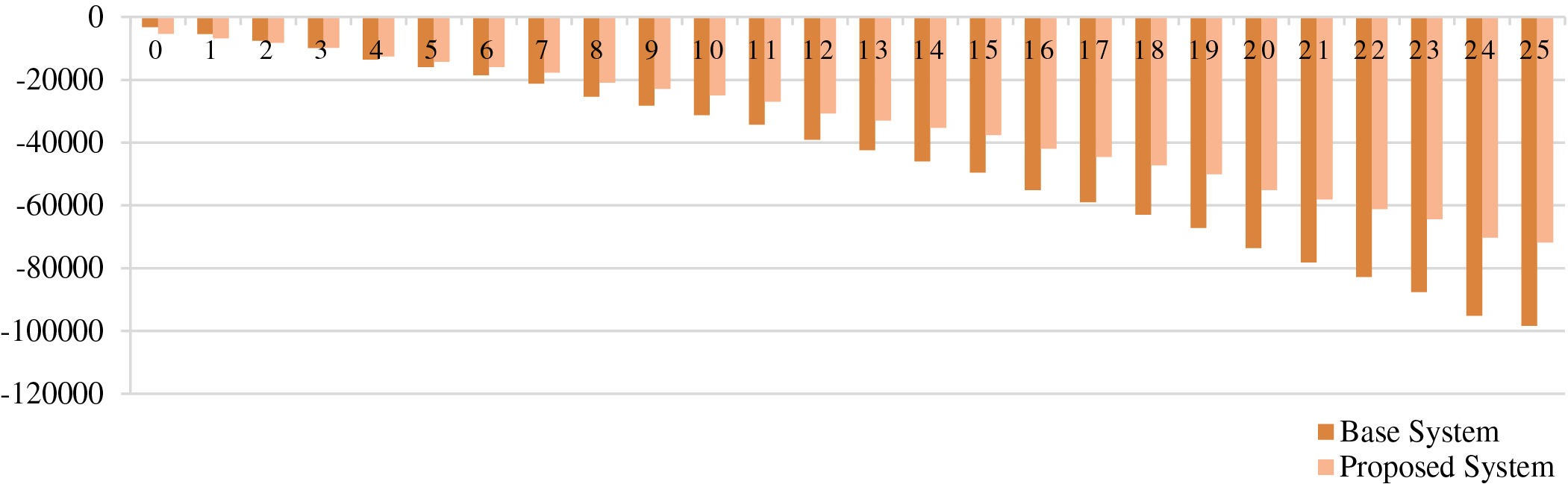 Fig. 10. Cash-flow comparison with base system and proposed system.