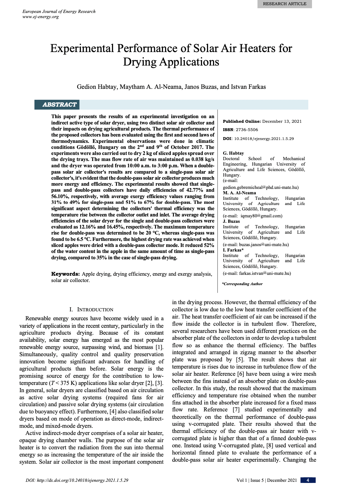 Gedion Habtay, Maytham A. Al-Neama, Janos Buzas, Istvan Farkas