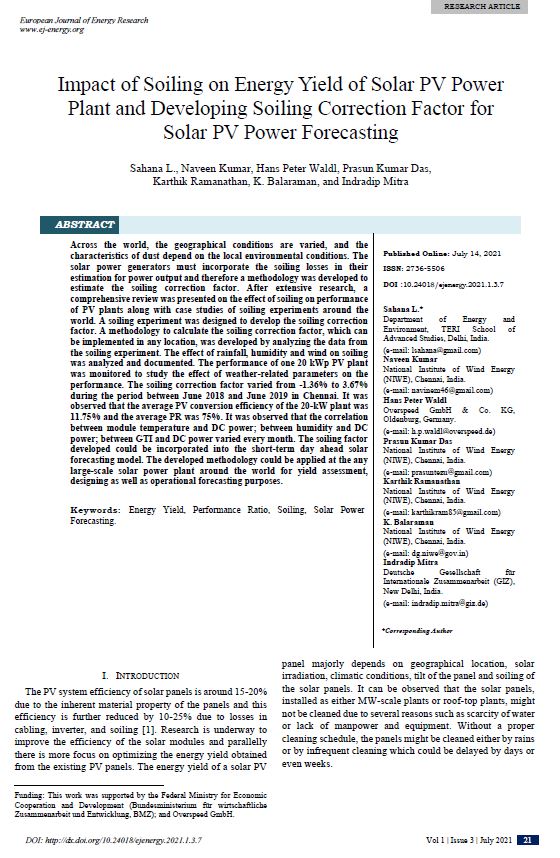 Impact of Soiling on Energy Yield of Solar PV Power Plant and Developing Soiling Correction Factor for Solar PV Power Forecasting
